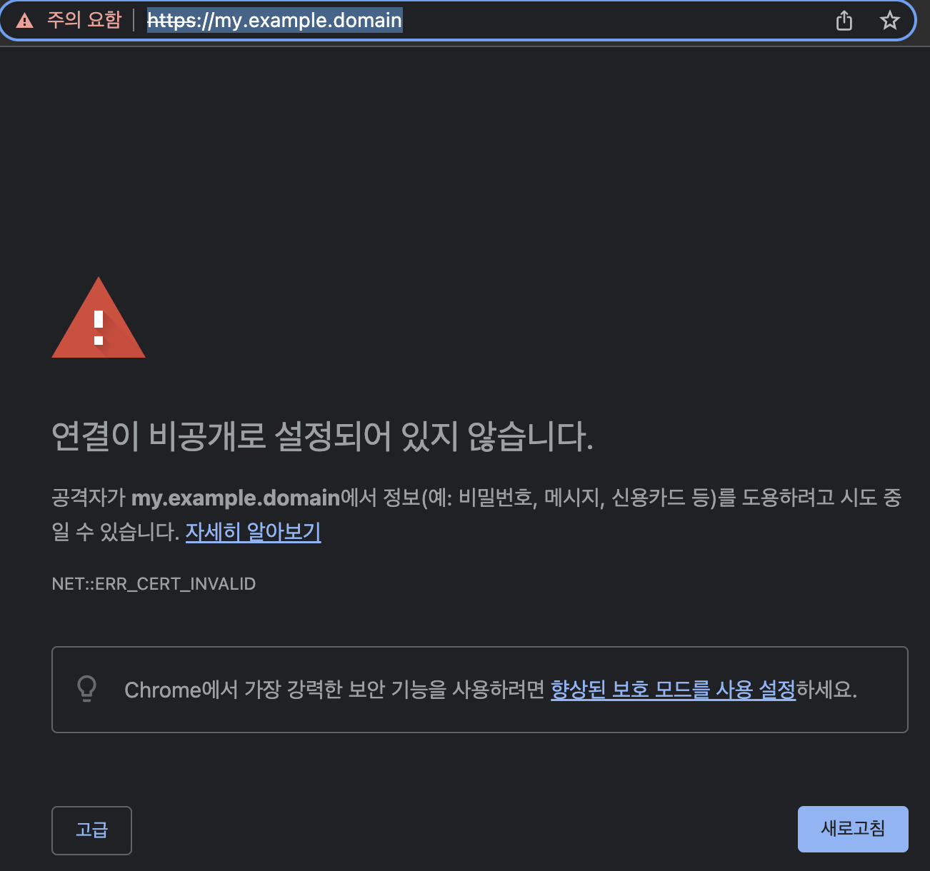 - 이번엔 https://my.example.domain으로 접속해보자.